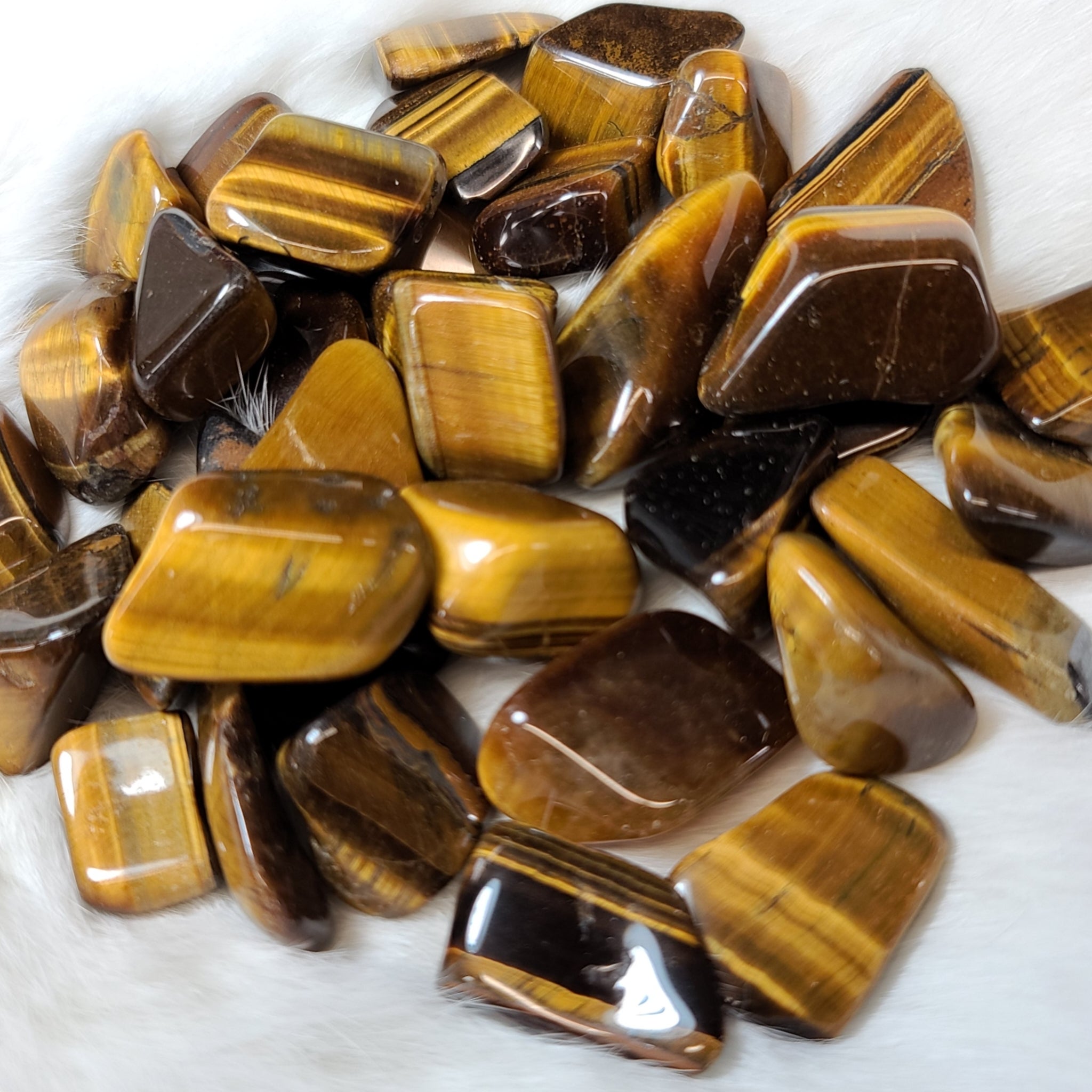 These are beautiful specimens of South African yellow Tiger's Eye! They measure roughly 1-1.5" long and can be shipped worldwide!