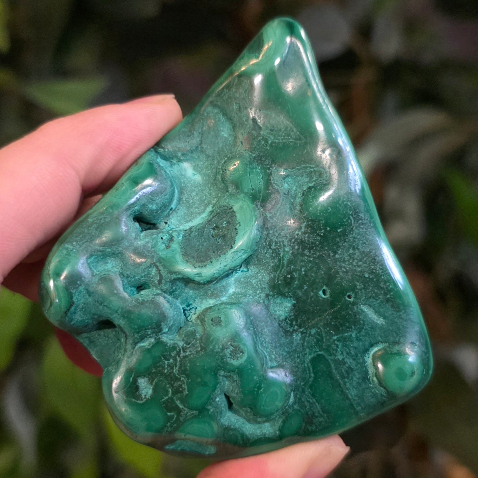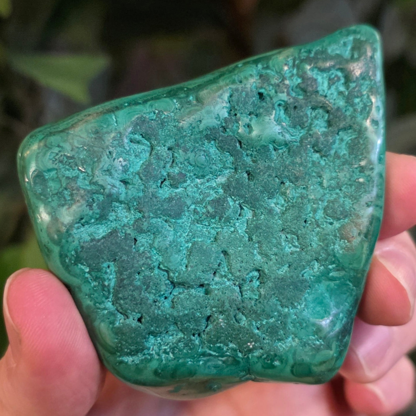 These are real, tumbled, specimens of Malachite! This beautiful mineral specimen was mined in South Africa and measures ~3" long.
