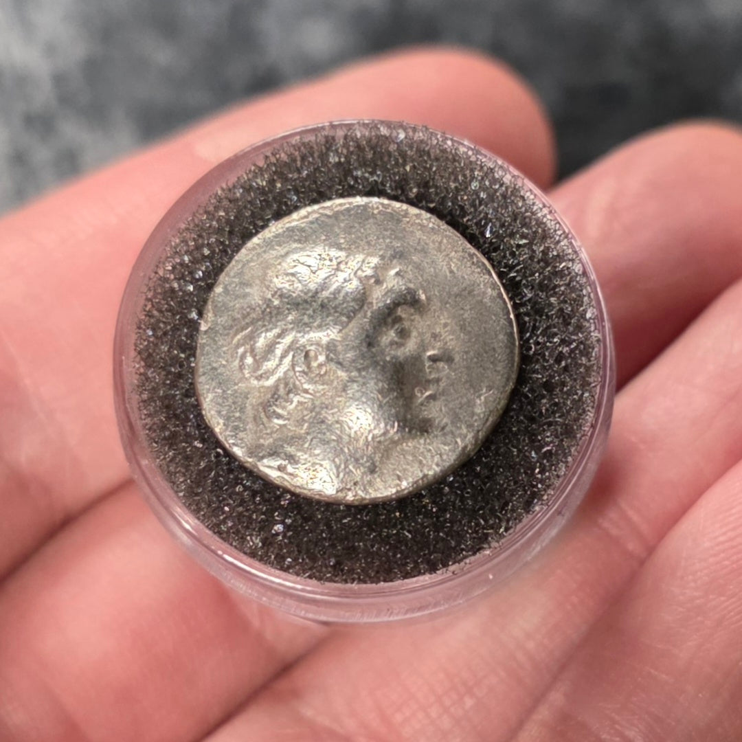 Real Greek silver drachma coin for sale! While we haven't had time to identify this coin yet, a buyer certainly can! This specimen would make a great start, or addition, to any collection.