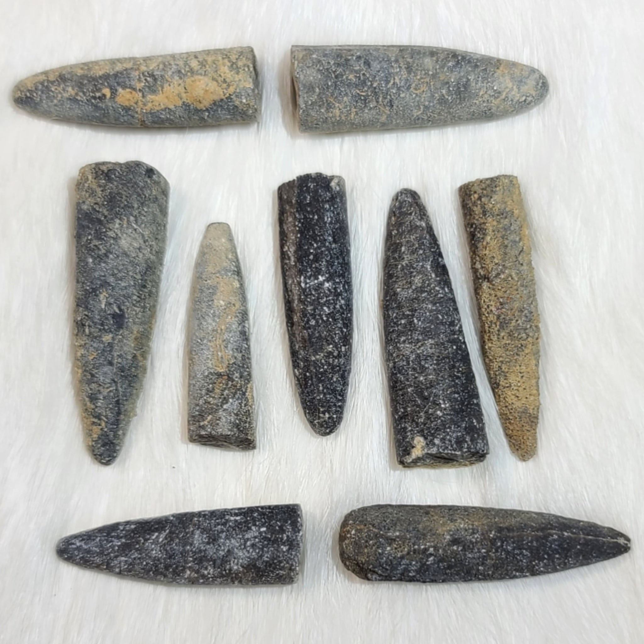 These are real, fossilized, belemnites from the Sundance Formation of Wyoming!