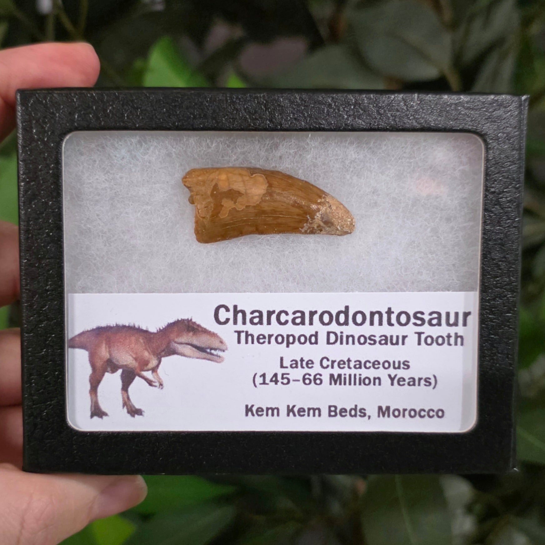 Dating back to 112-93.5 million years ago, this is a real fossil carcharodontosaurus dinosaur tooth!