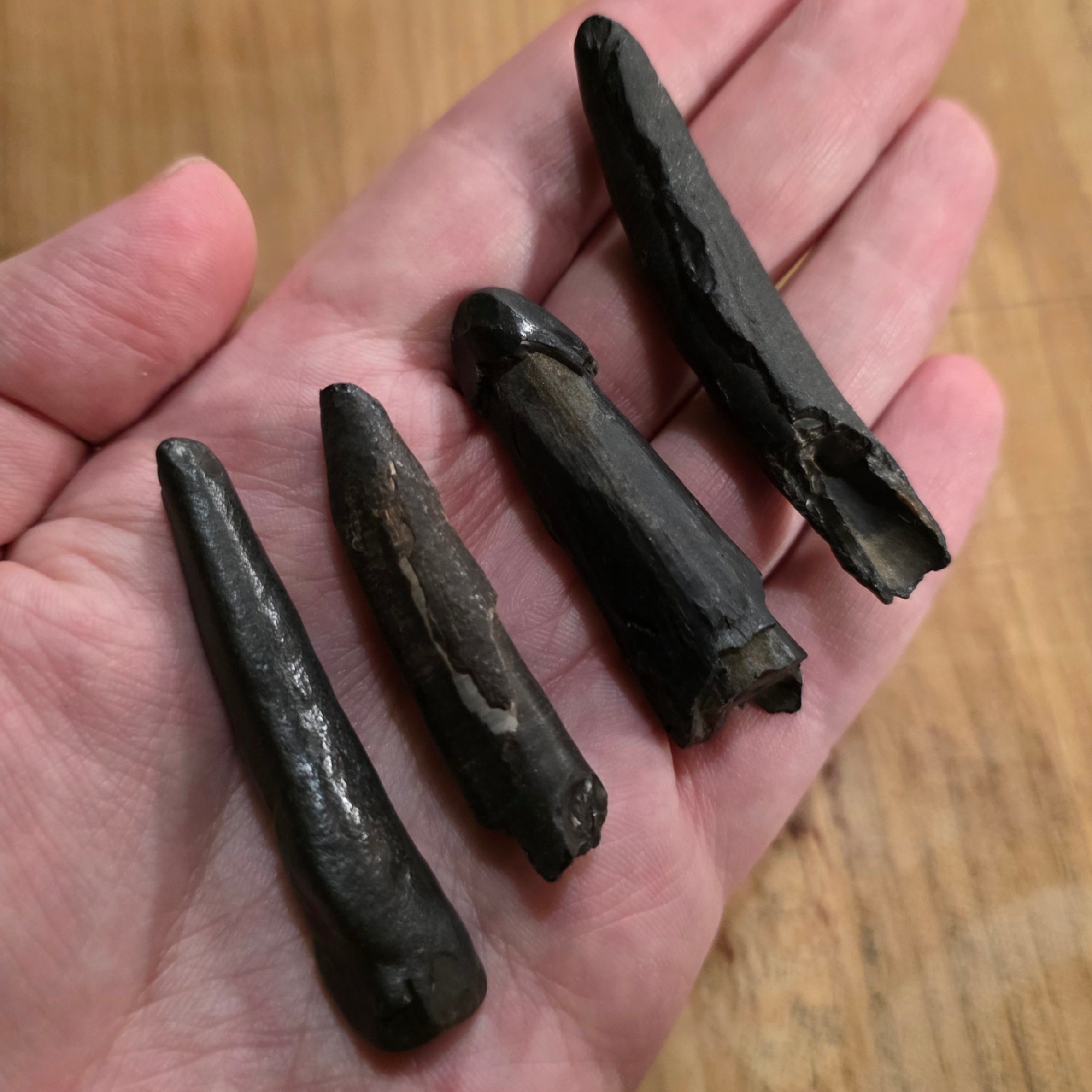 Fossilized whale teeth for sale! Dating back to the Miocene/Pliocene Epochs (5 to 15 million years ago), these specimens were found in the Hawthorne Formation in South Carolina.