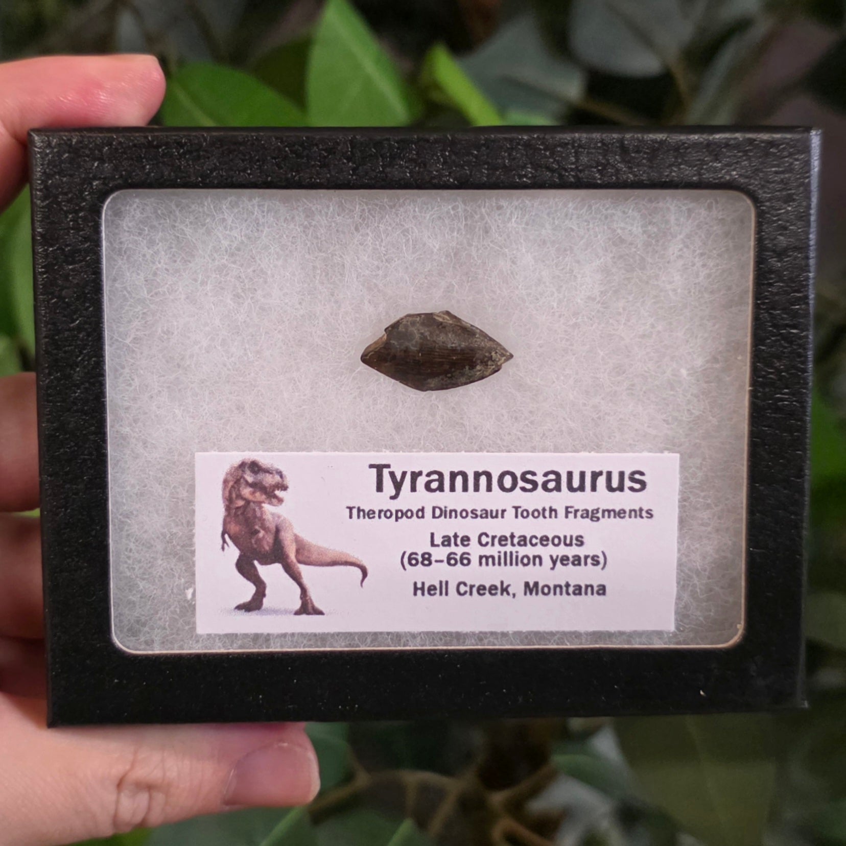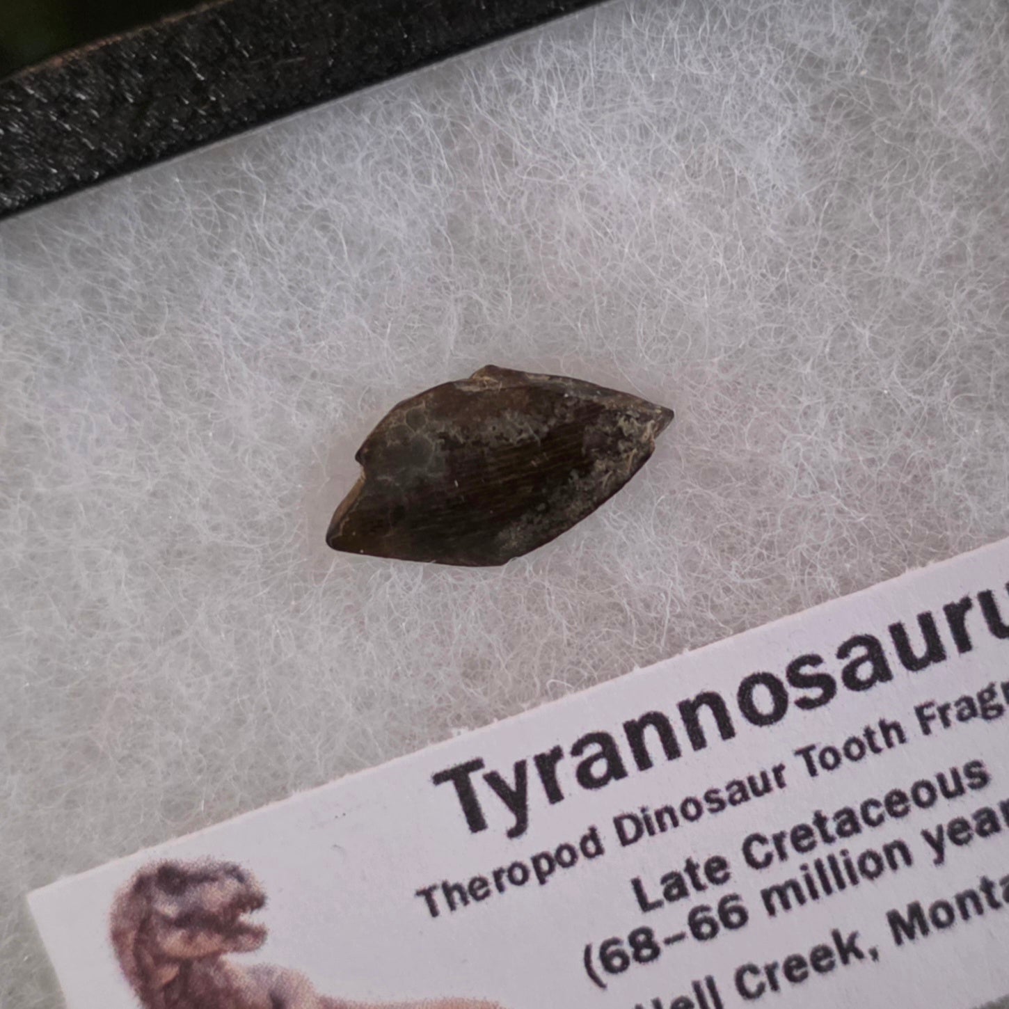 Real fossilized tyrannosaur tooth for sale! Found in Hell Creek, Montana this amazing theropod dinosaur tooth dates back 68-66 million years (Late Cretaceous).