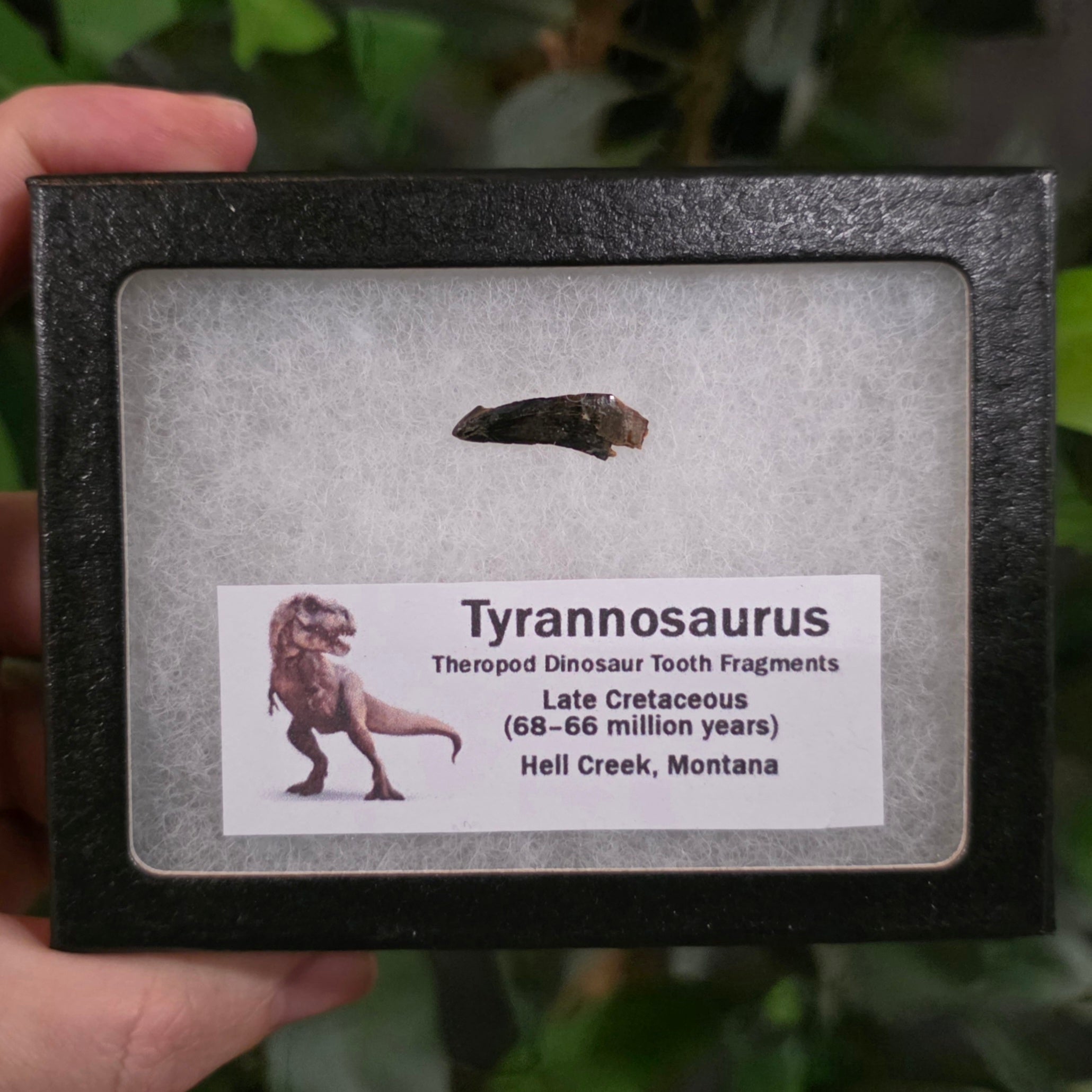 Real fossilized tyrannosaur tooth for sale! Found in Hell Creek, Montana this amazing theropod dinosaur tooth dates back 68-66 million years (Late Cretaceous).
