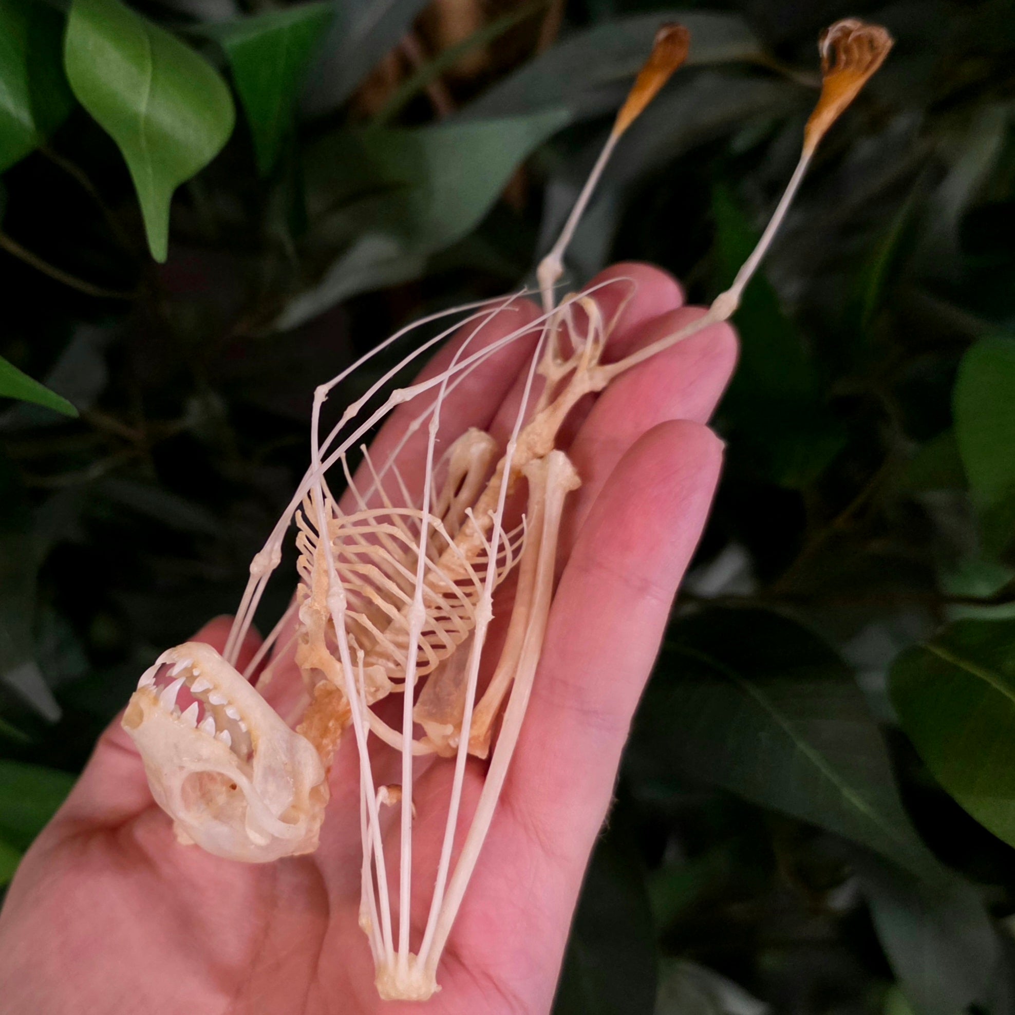 Real Greater Short-Nosed fruitbat (Cynopterus sphinx) skeletons for sale! These bats are indigenous to the areas of Indonesia, Malaysia, and New Guinea.