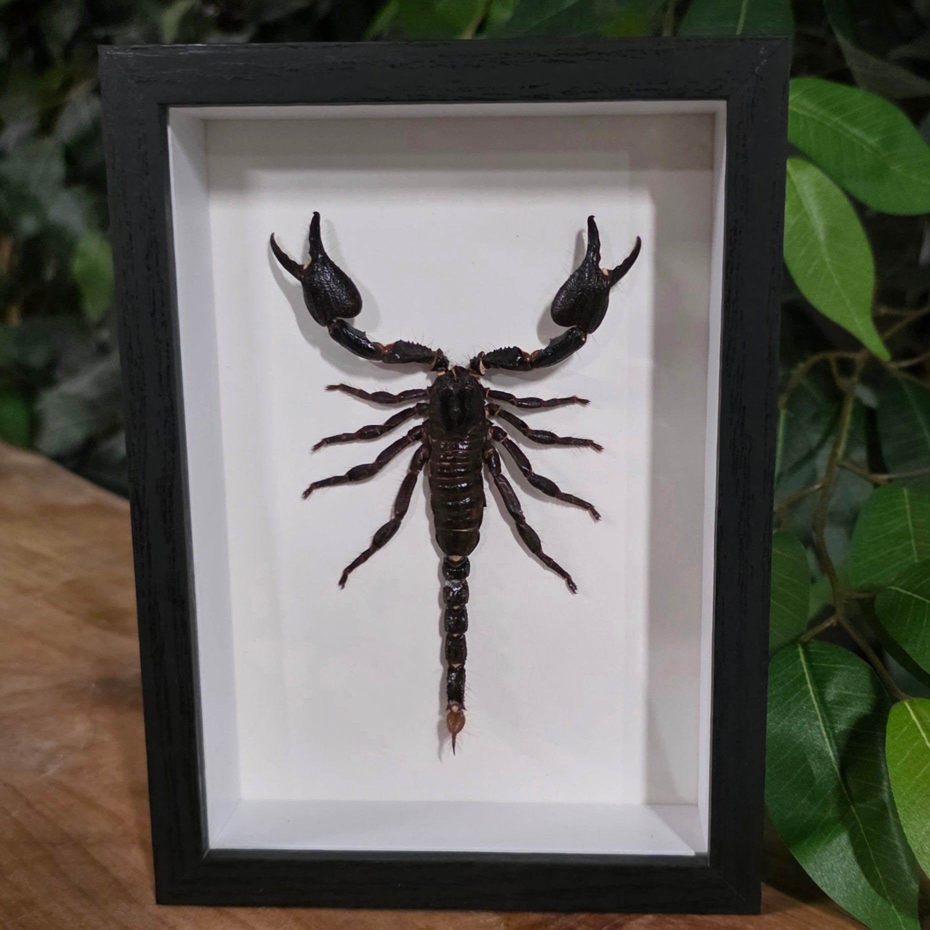 Real Blue Forest Scorpion (Heterometrus cyaneus) for sale! It has been mounted in a 7.75"x5.75" shadowbox. THEY CAN BE SHIPPED WORLDWIDE!