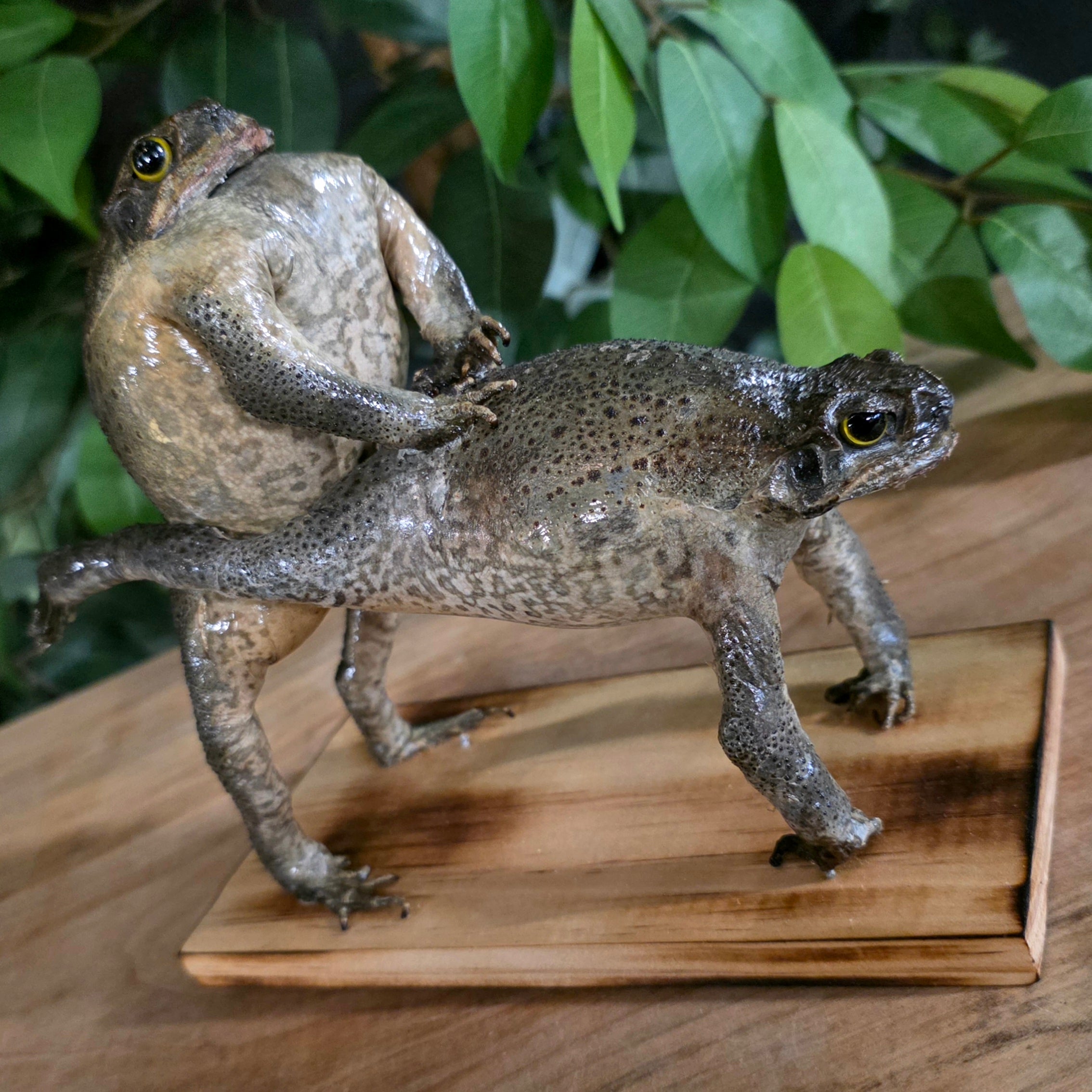Naughty taxidermy cane toads for sale! These are real taxidermy cane toads (Rhinella marina)! Indigenous to South and mainland Central America, they have been introduced to various islands in Oceania, the Carribean and Northern Australia with horrible environmental repercussions.