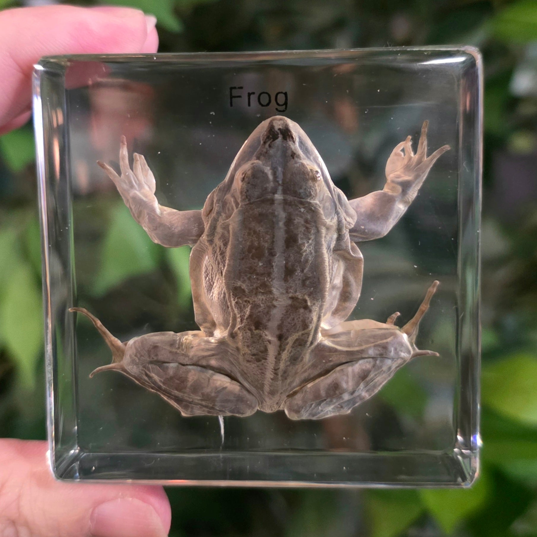 Real, preserved, frog for sale! These resin blocks measure 2.75" x 2.75" and were sourced from a scientific supply company.