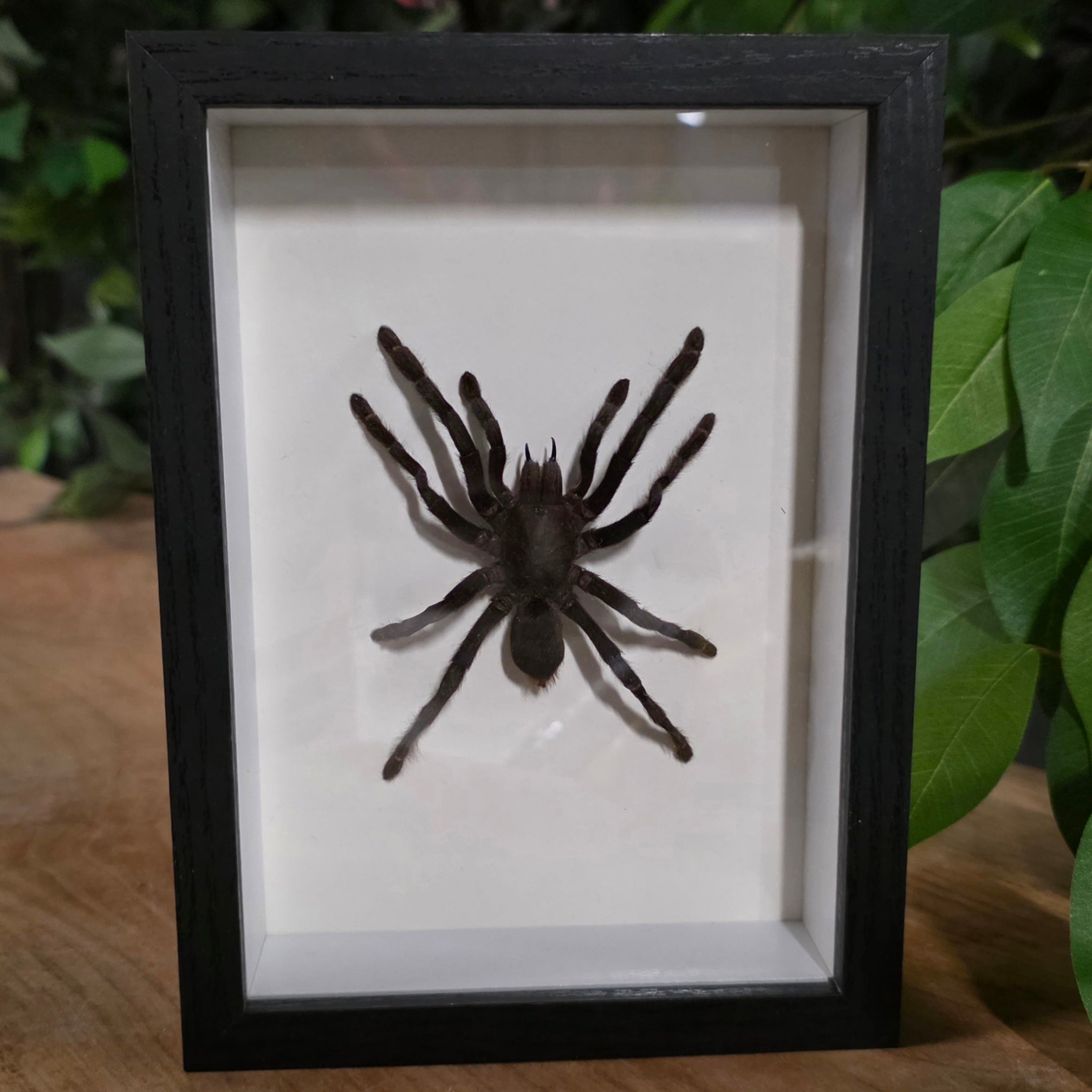 Framed tarantula for sale! This is a real preserved Javan Yellow Knee tarantulas (Selenocosmia javensis) from the island of Java, Indonesia! These spiders would make a fascinating and beautiful addition to any reference or display collection.