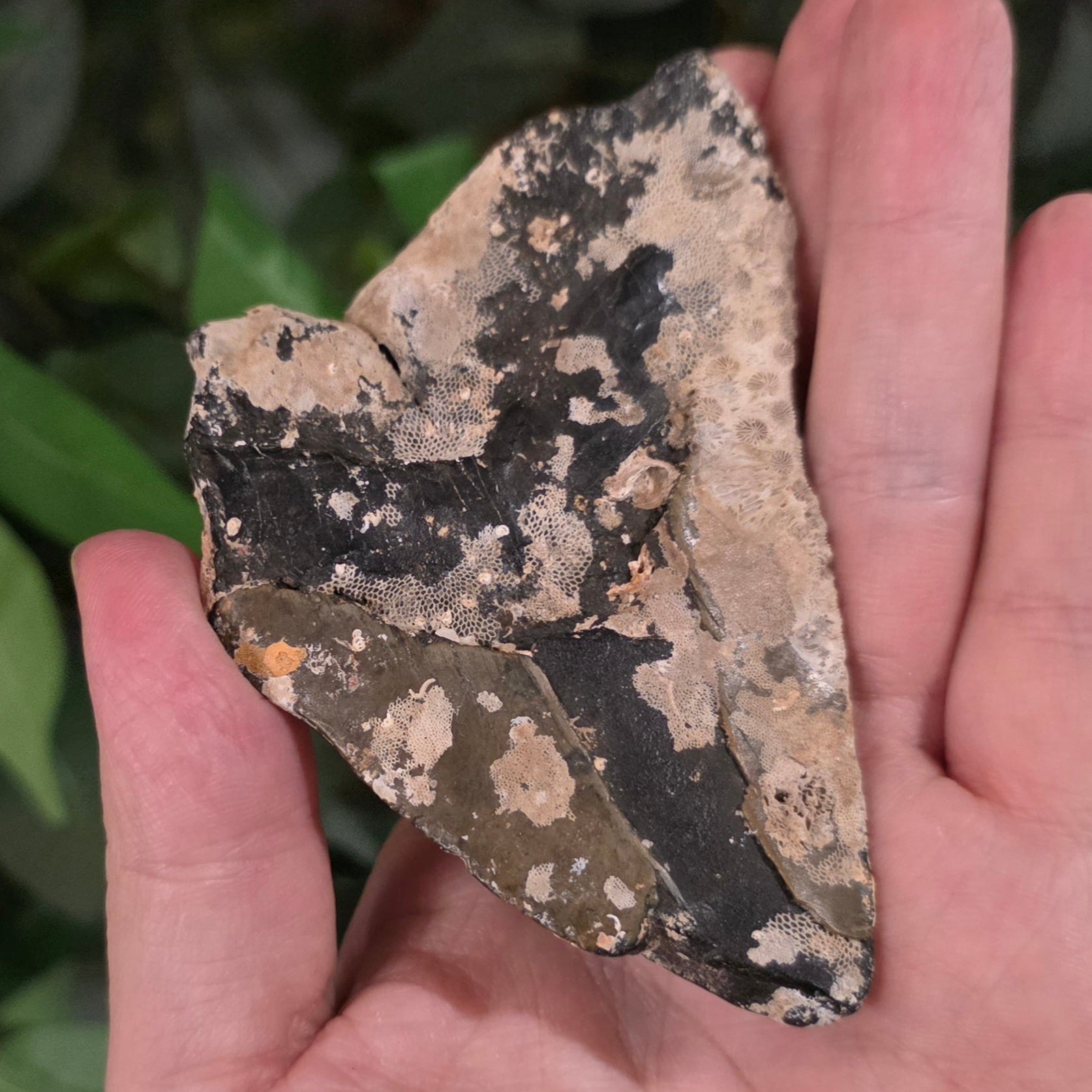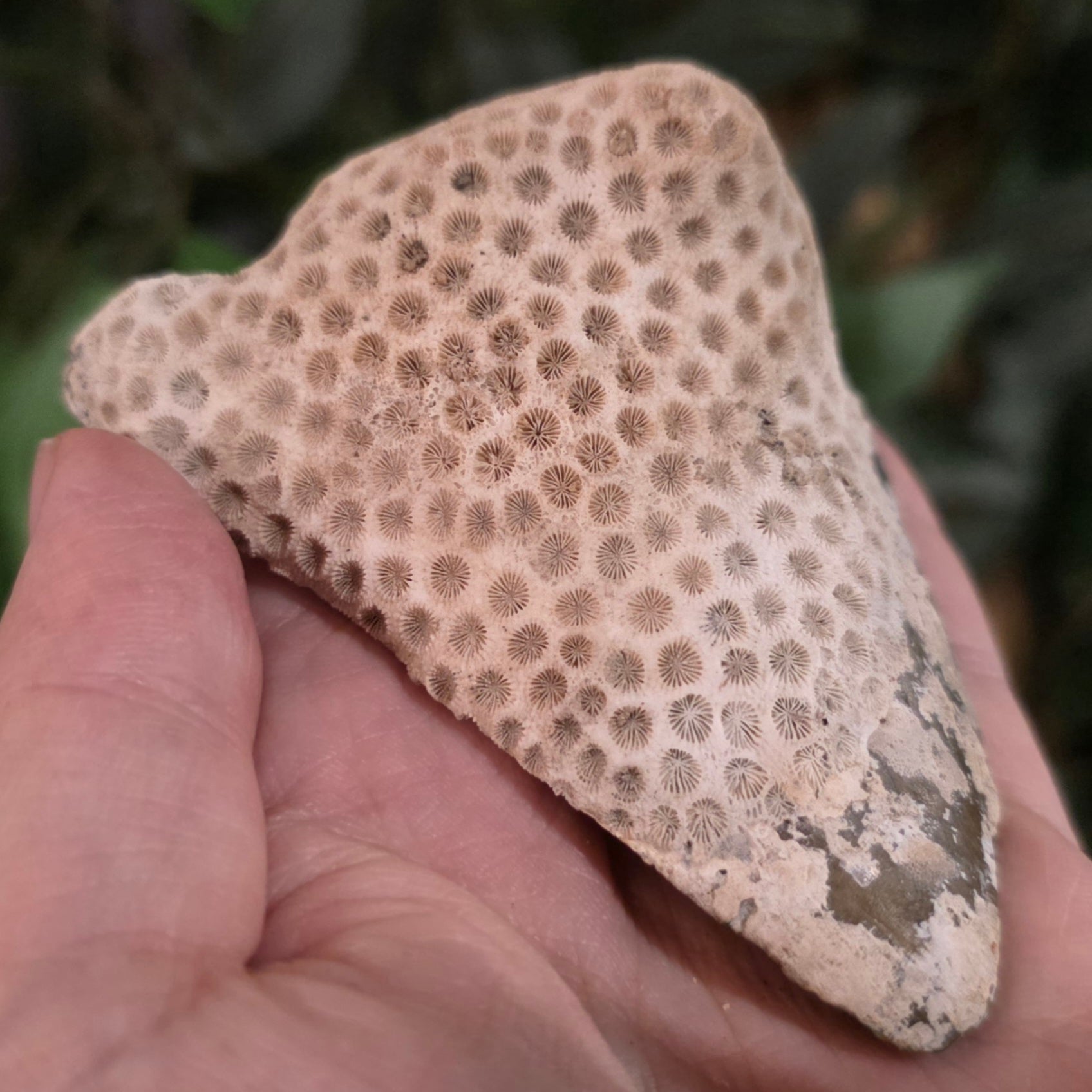 This fossilized, imperfect, specimen was found in the Hawthorne Formation of South Carolina! Amazingly enough, a modern coral has grown on this prehistoric specimen! It measures ~3.5" long.