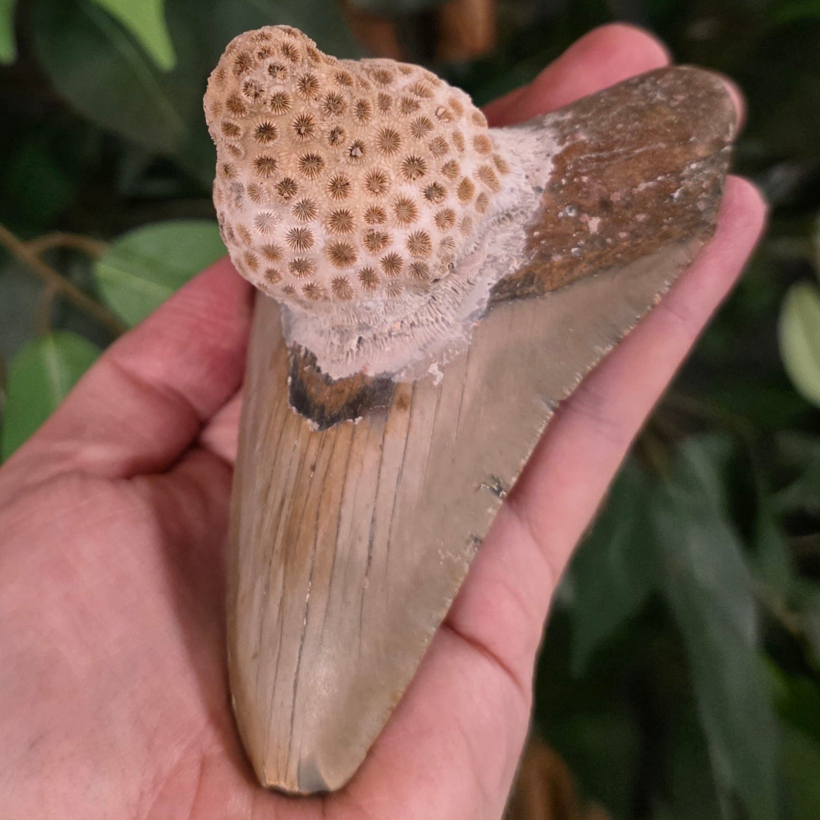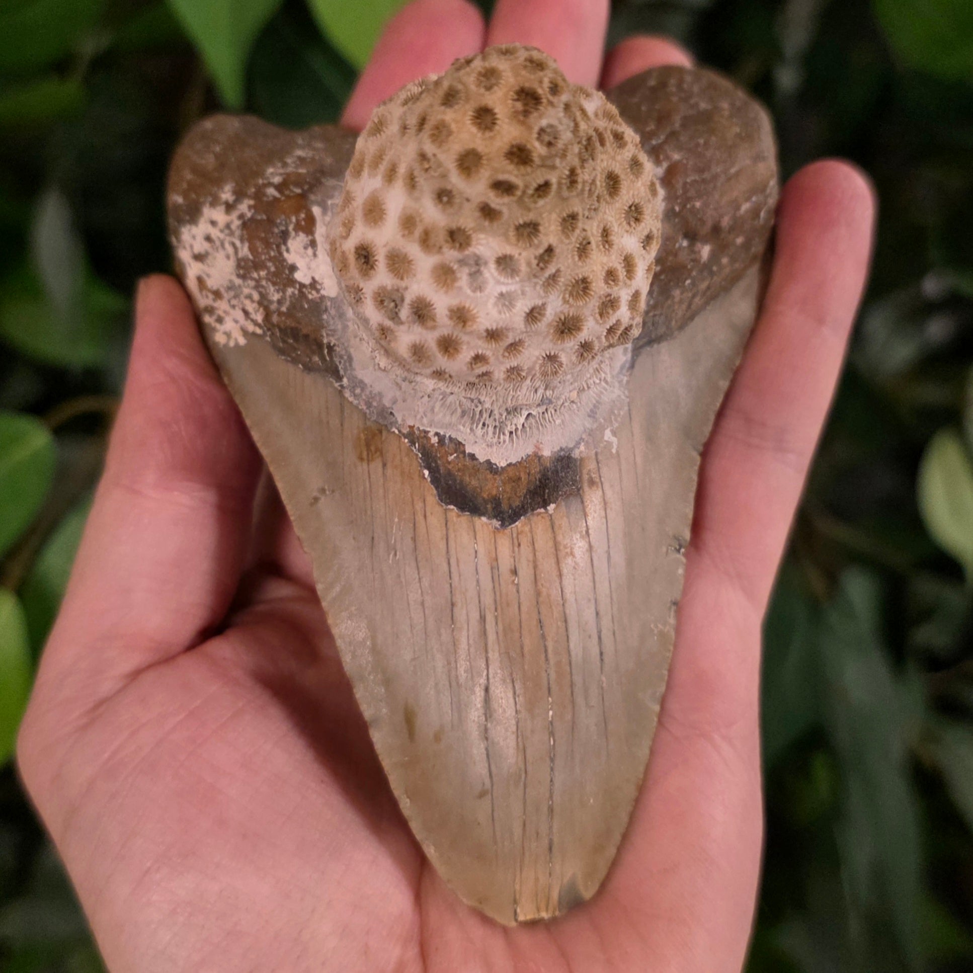 Megalodon Tooth, Coral B 4.5" (Ex-Museum)