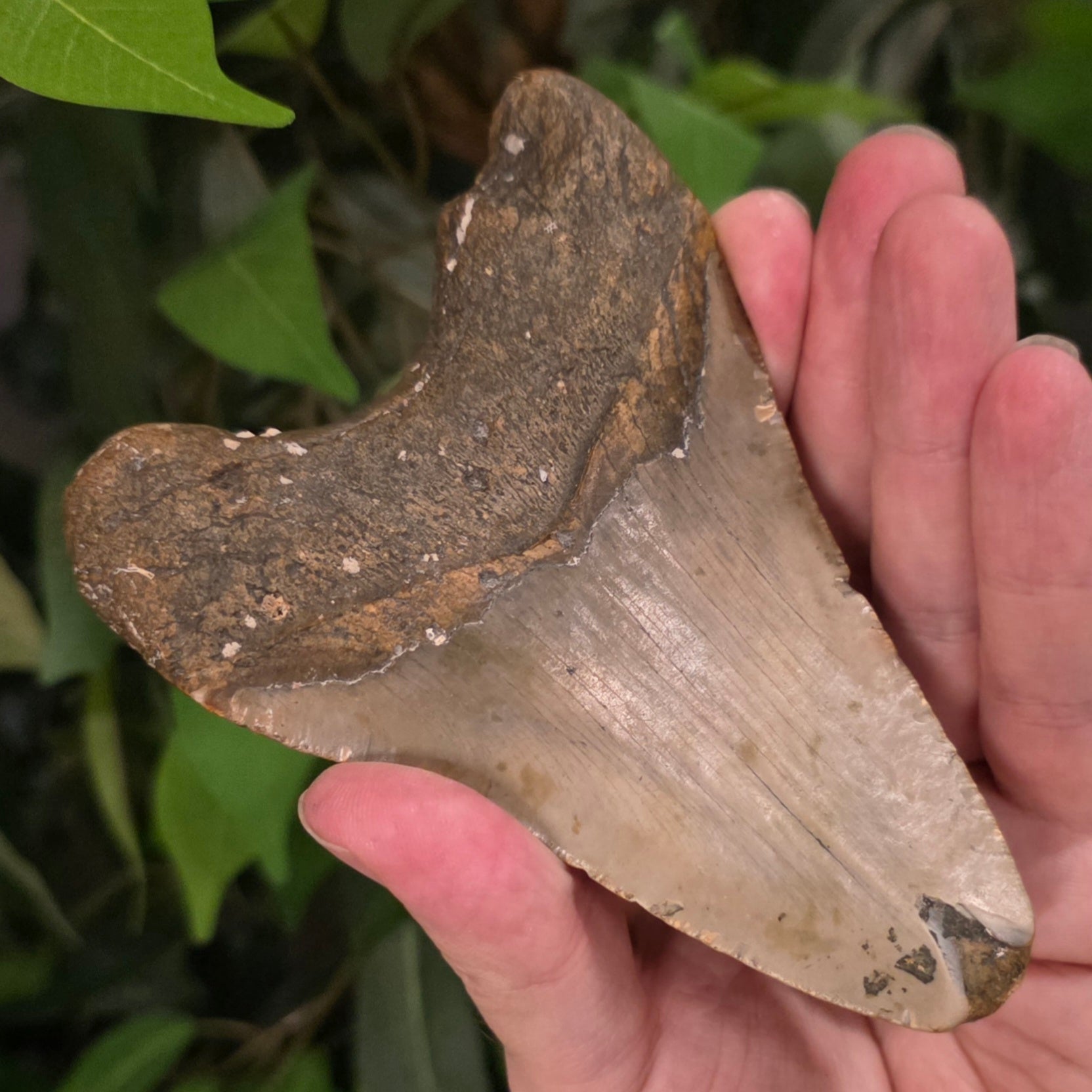 These are real megalodon super-shark teeth! Megalodon was the largest shark to ever live (reaching an estimated length of 18 meters or 59 ft) and fed on whales!