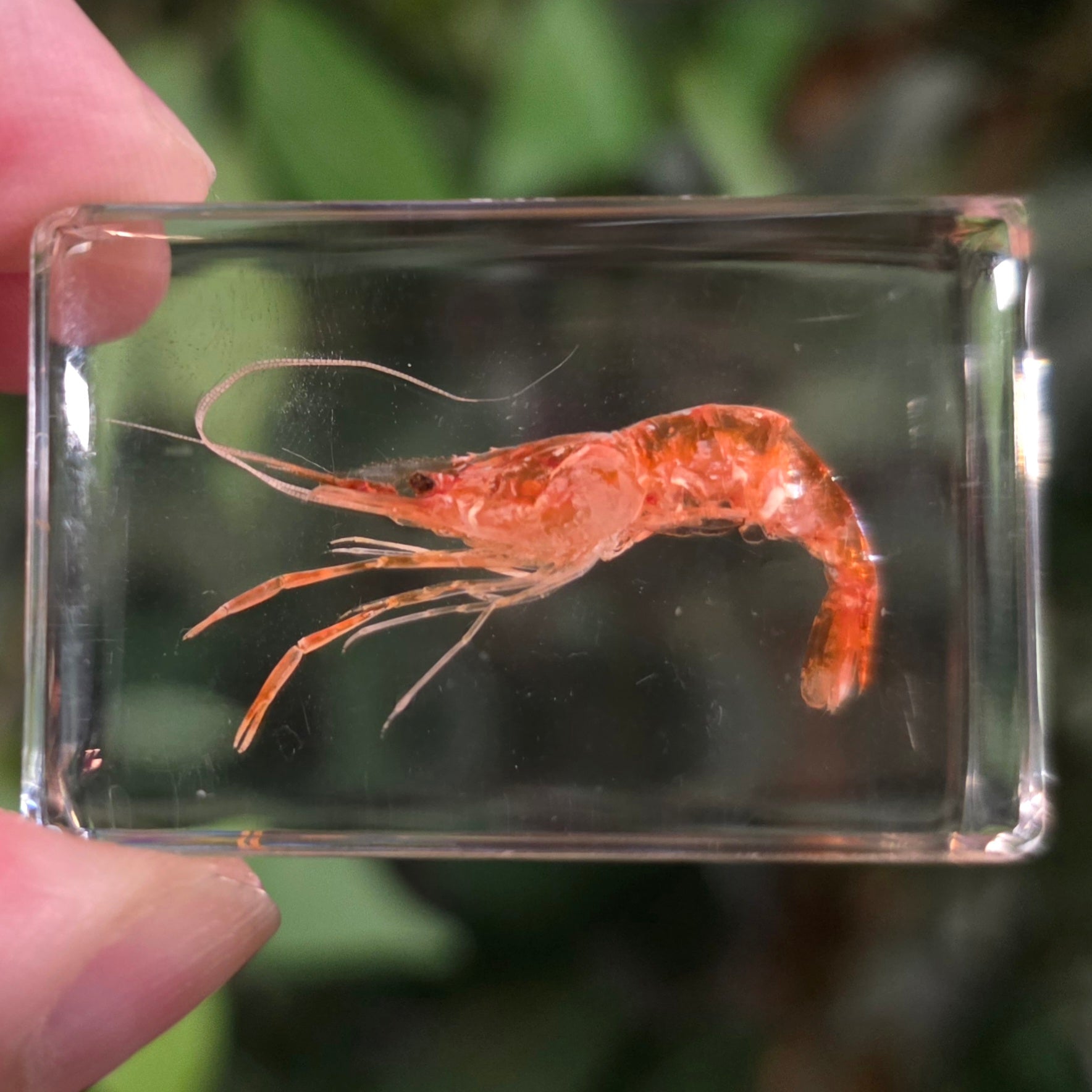 Real, preserved, shrimp for sale! These resin blocks measure 1.75" long and were sourced from a scientific supply company.