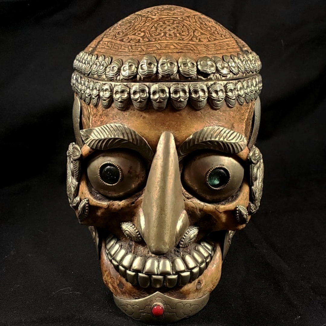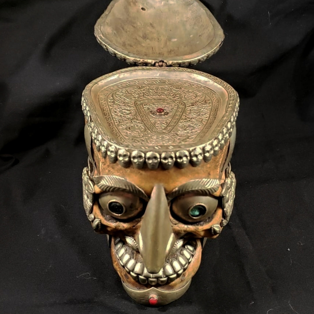 This is a rare Tibetan Kapala, an intricately and elaborately decorated human skull used in tantric rituals! If you are looking for a museum quality, antique, specimen to add to your collection, look no further!